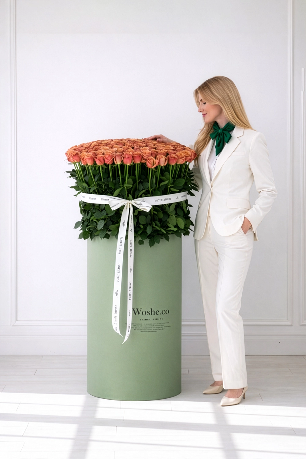 Sage Green Vip Box - Peach Roses