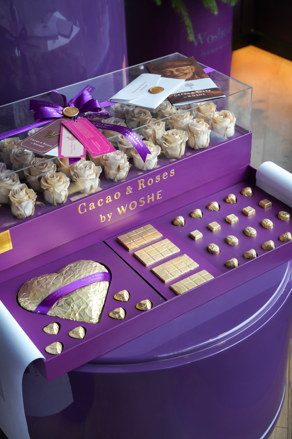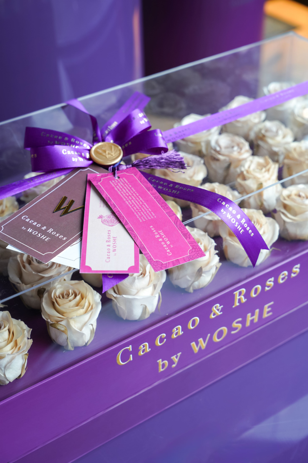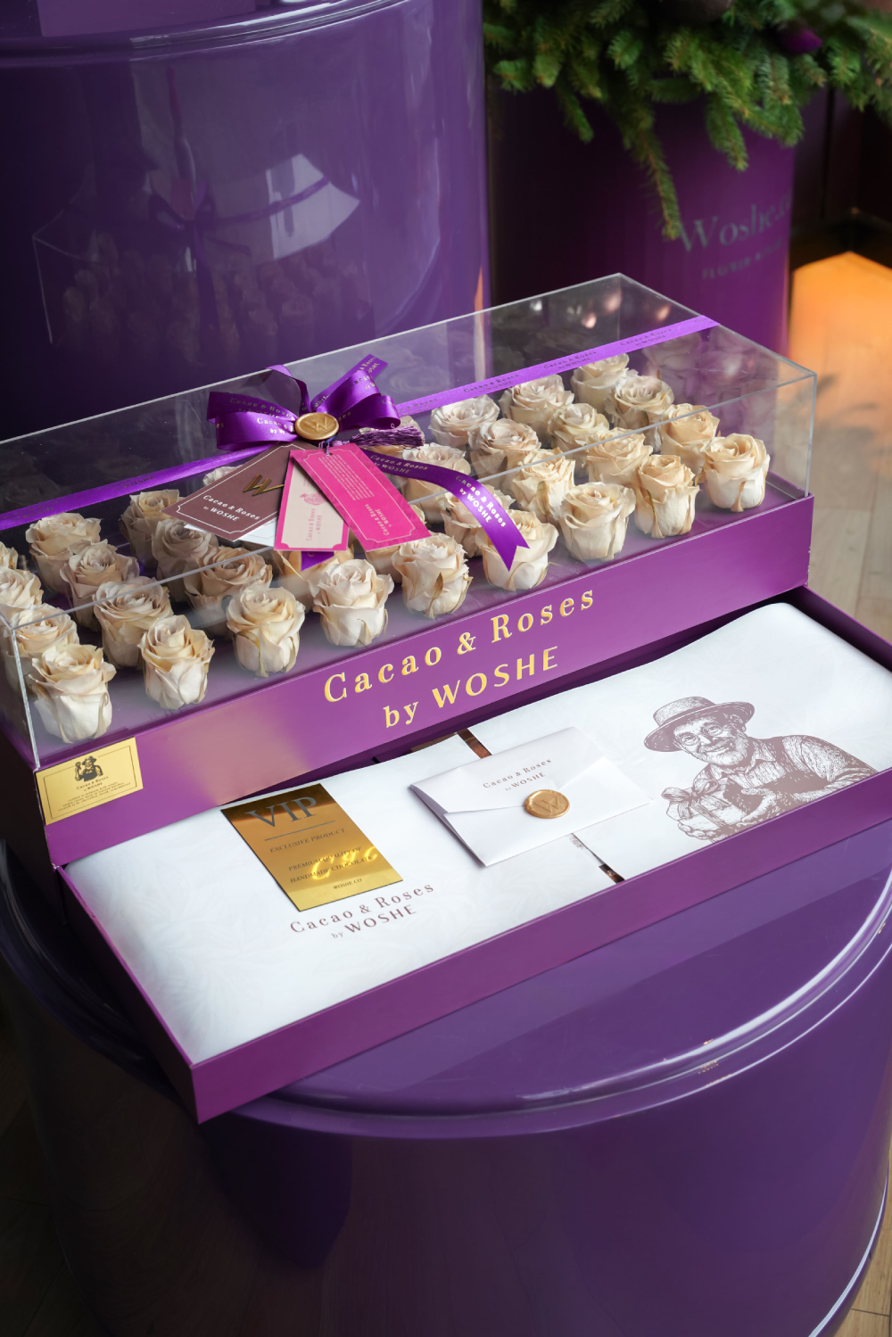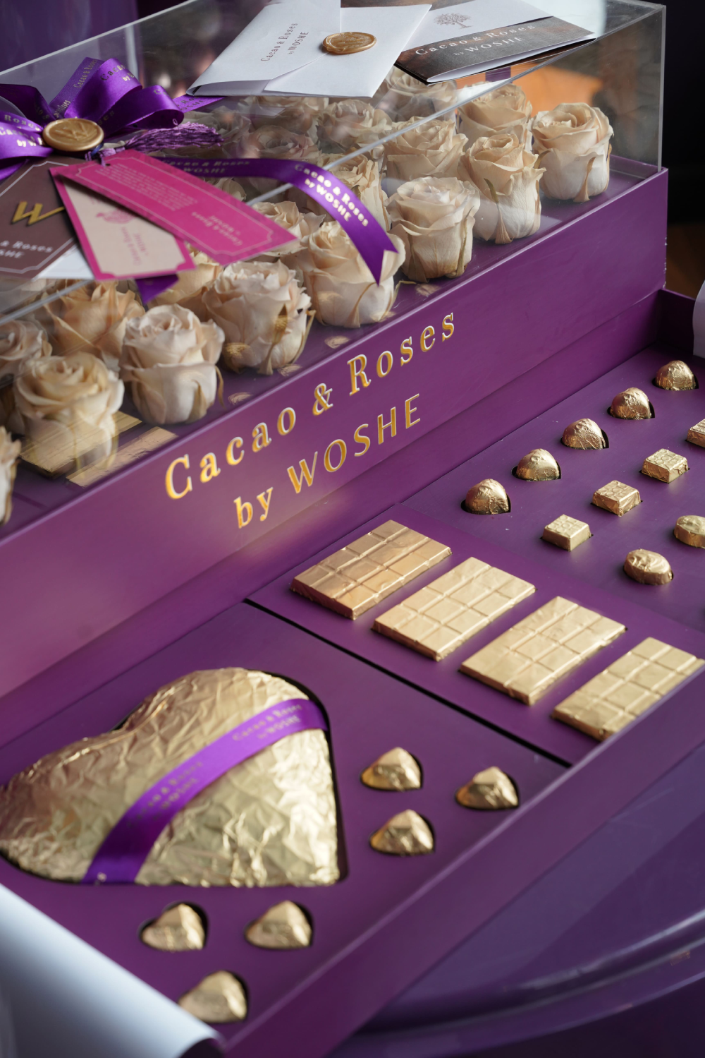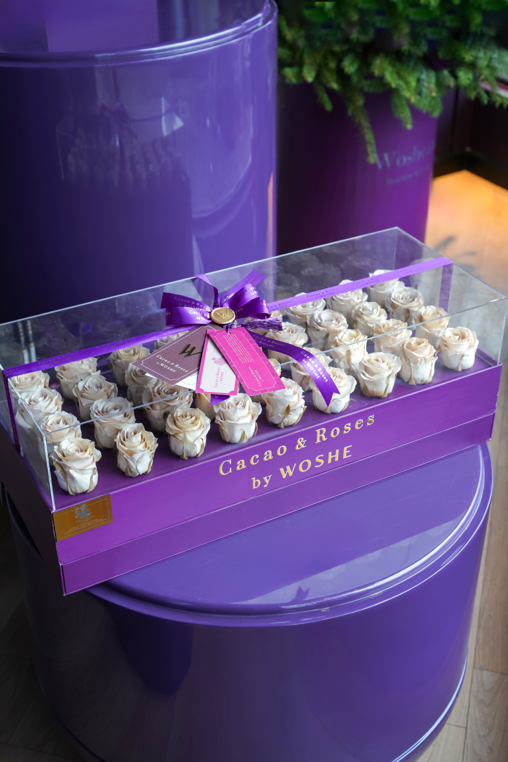 ترکیبی از رزهای جاودان متعدد در کنار شکلات‌های دست‌ساز بلژیکی، در باکسی شفاف و مینیمال که زیبایی را بی‌واسطه نشان می‌دهد؛