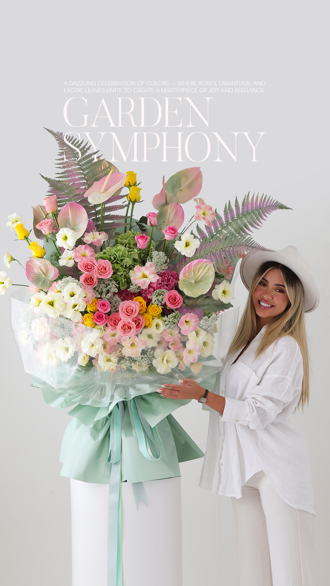 دسته گل امضای وشه، چیدمان هوشمندانه در سبک Dimensional Desigm با جلوه ای سه بعدی