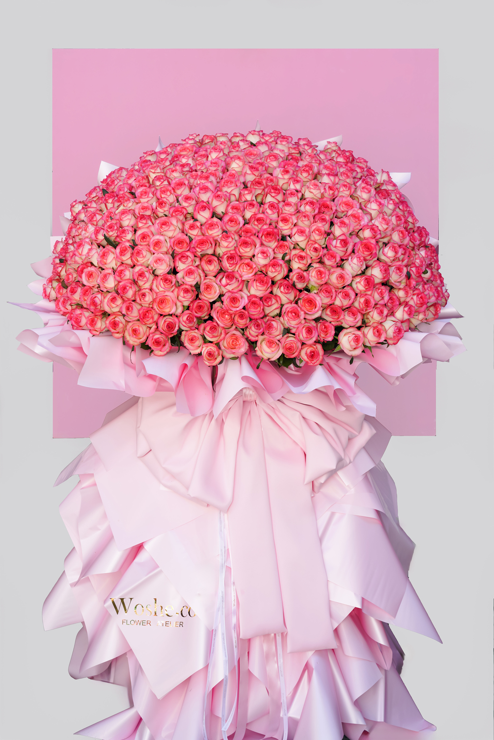 ۳۰۰ شاخه رز هلندی در طیفی از صورتیِ دلنشین،