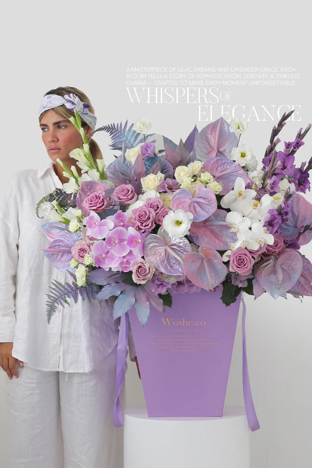 آنتوریومهای رنگ آمیزی شده، رزهای هلندی، ارکیده در دوطیف سفید و یاسی