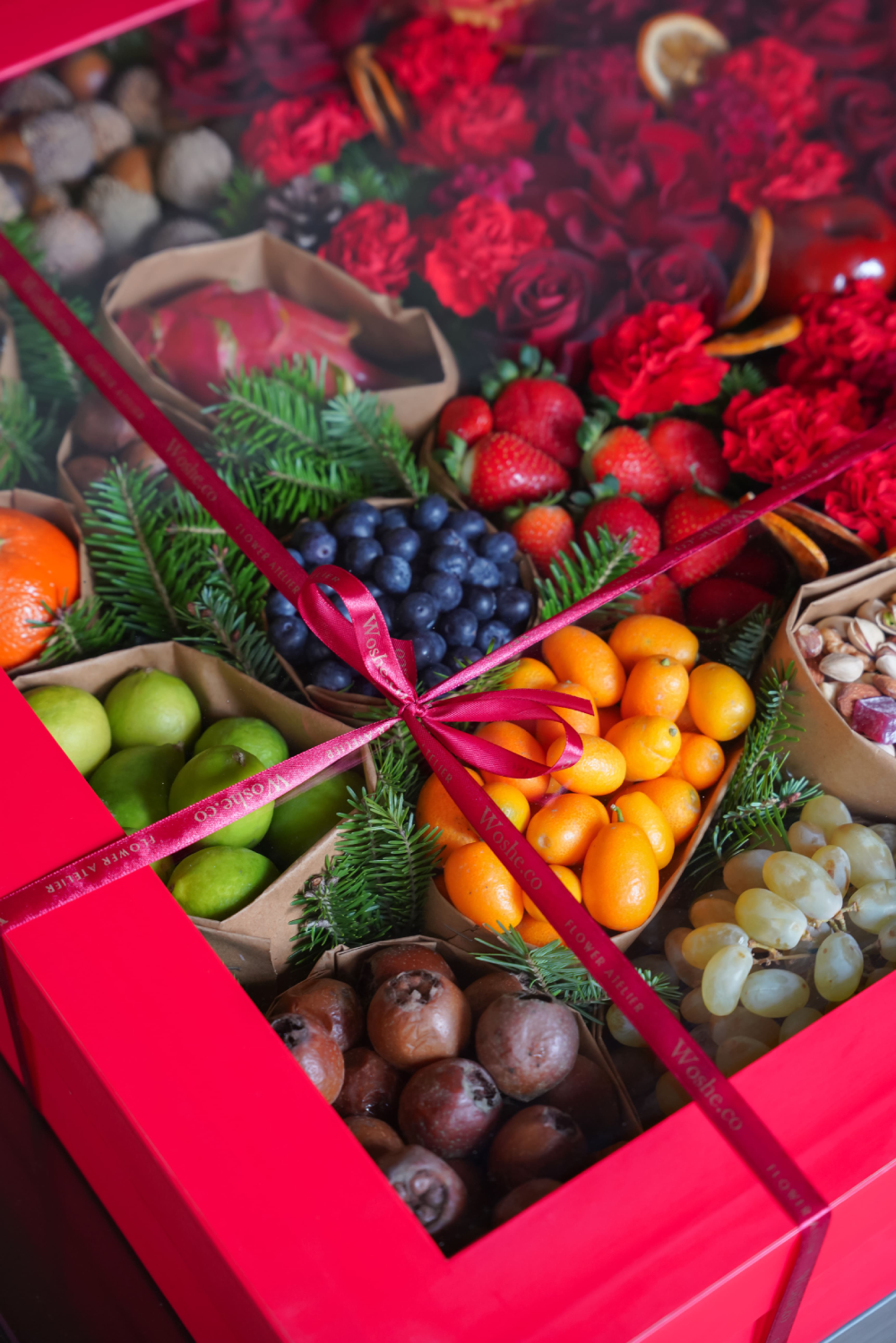 ترکیبی از رزهای جاودان متعدد در کنار شکلاتهای دستساز بلژیکی، در باکسی شفاف و مینیمال که زیبایی را بیواسطه نشان میدهد؛