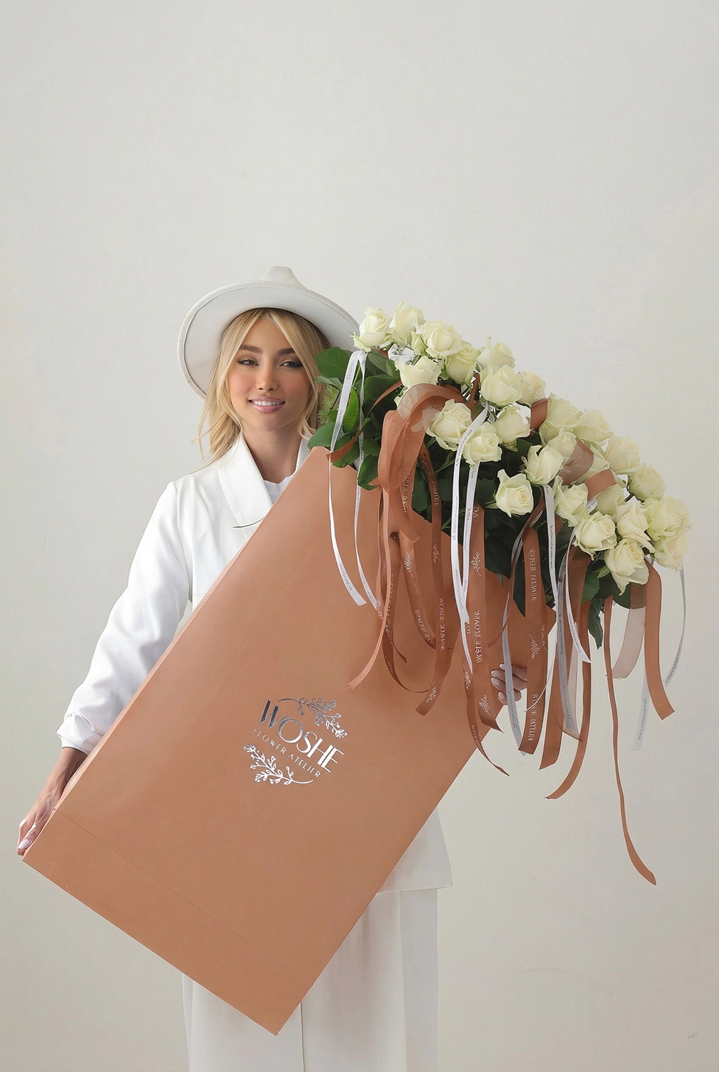 Cream Rose Bag - White Rose Bag , ۱۰۰ شاخه