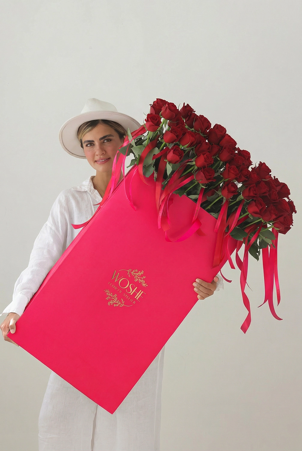 Hot Pink Rose Bag- Red Roses , ۱۰۰ شاخه