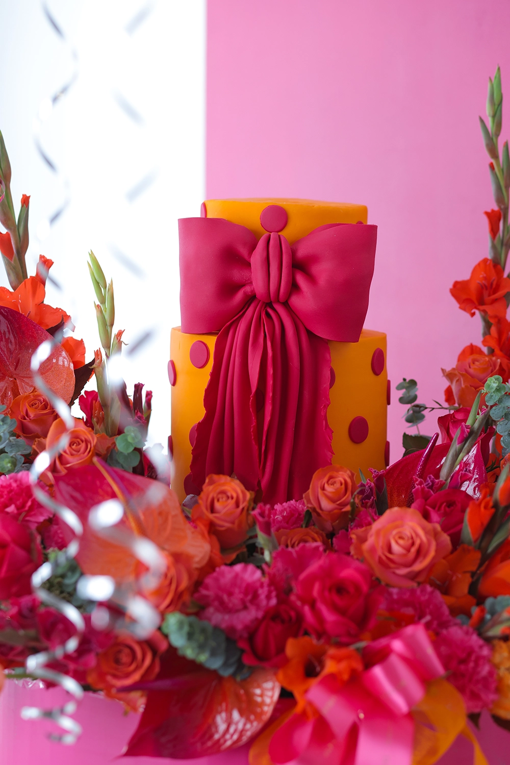 و طبقه ی بالایی کیک و قابل سرو است طبقه ی زیرین به صورت ماکت