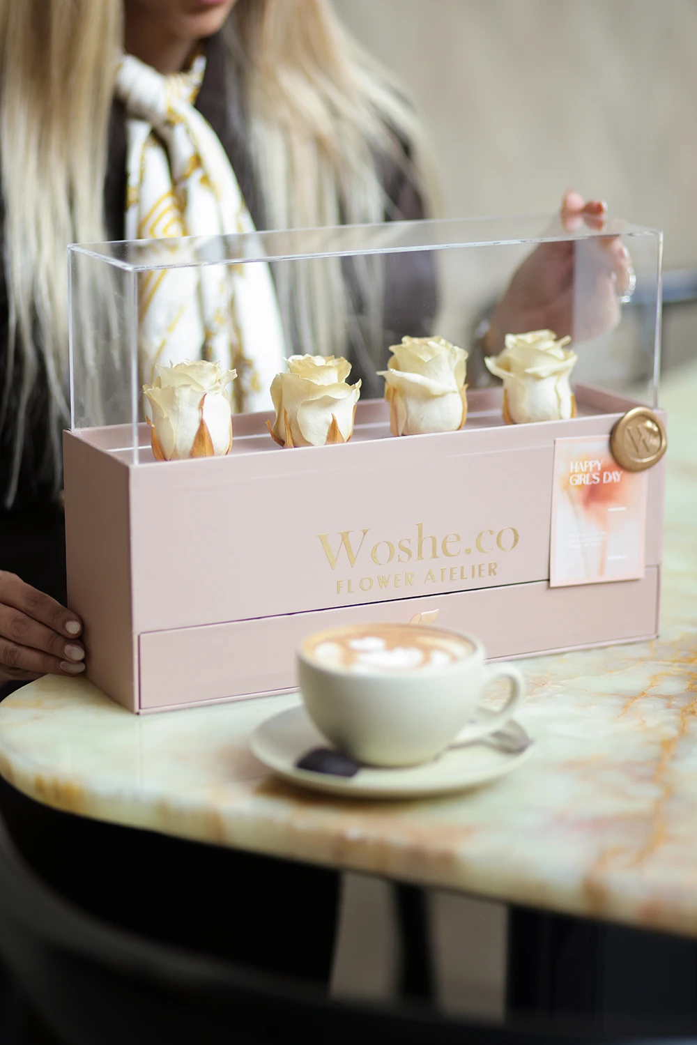 چهار عدد شکلات بار دستساز که با کره کاکائو اصیل بلژیکی و مواد اولیه منتخب از Callebaut Belgium ساخته شدهاند، در کنار چهار رز هلندی طبیعی که طی فرآیندی ویژه ماندگار شده و برای مدت طولانی زیبایی خود را حفظ میکنند—ترکیبی از هنر، طعم و ماندگاری در قالبی لوکس.”