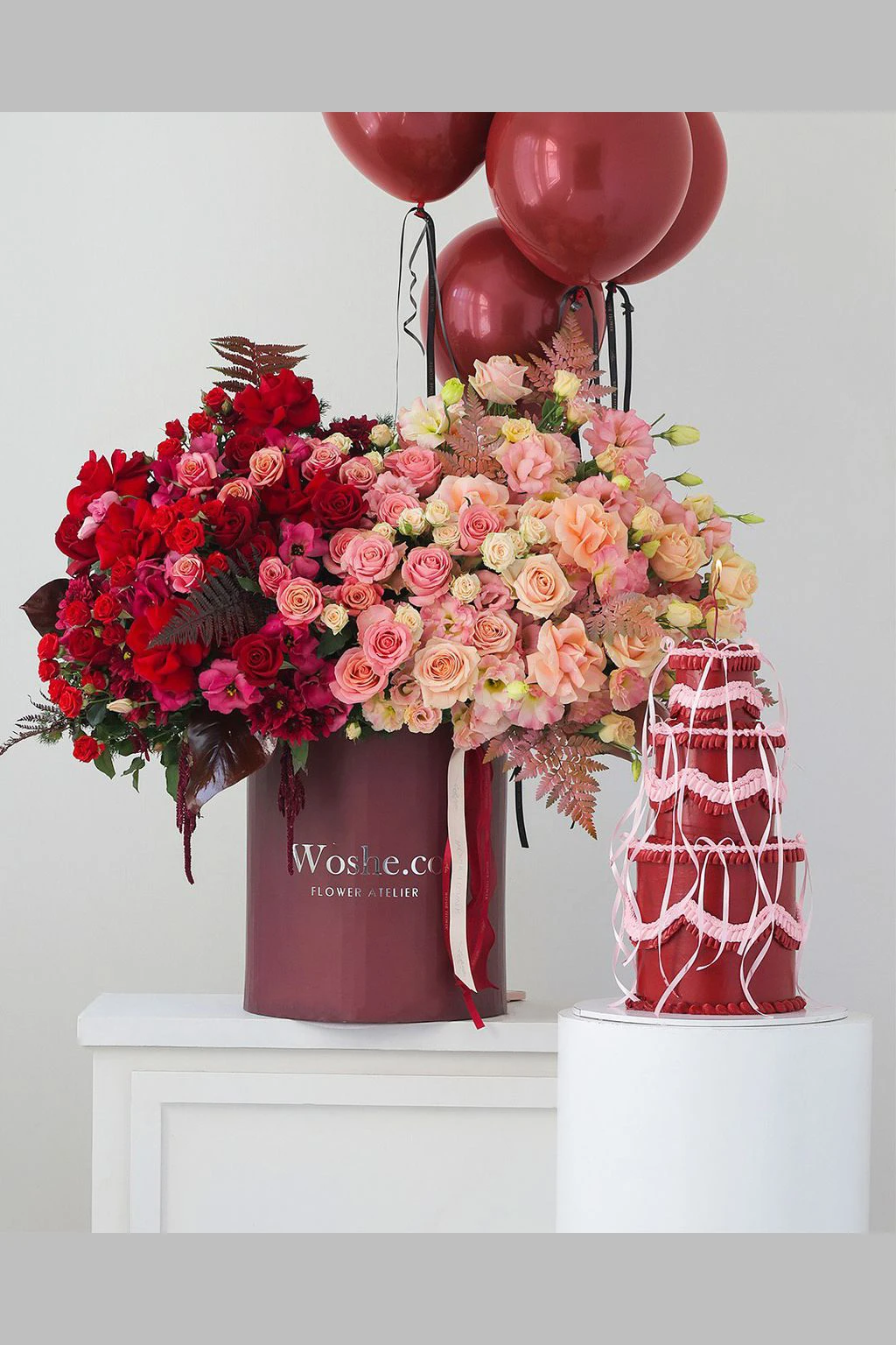 قیمت :  گل + کیک (۳ طبقه )+ بادکنک ۱۰ عدد