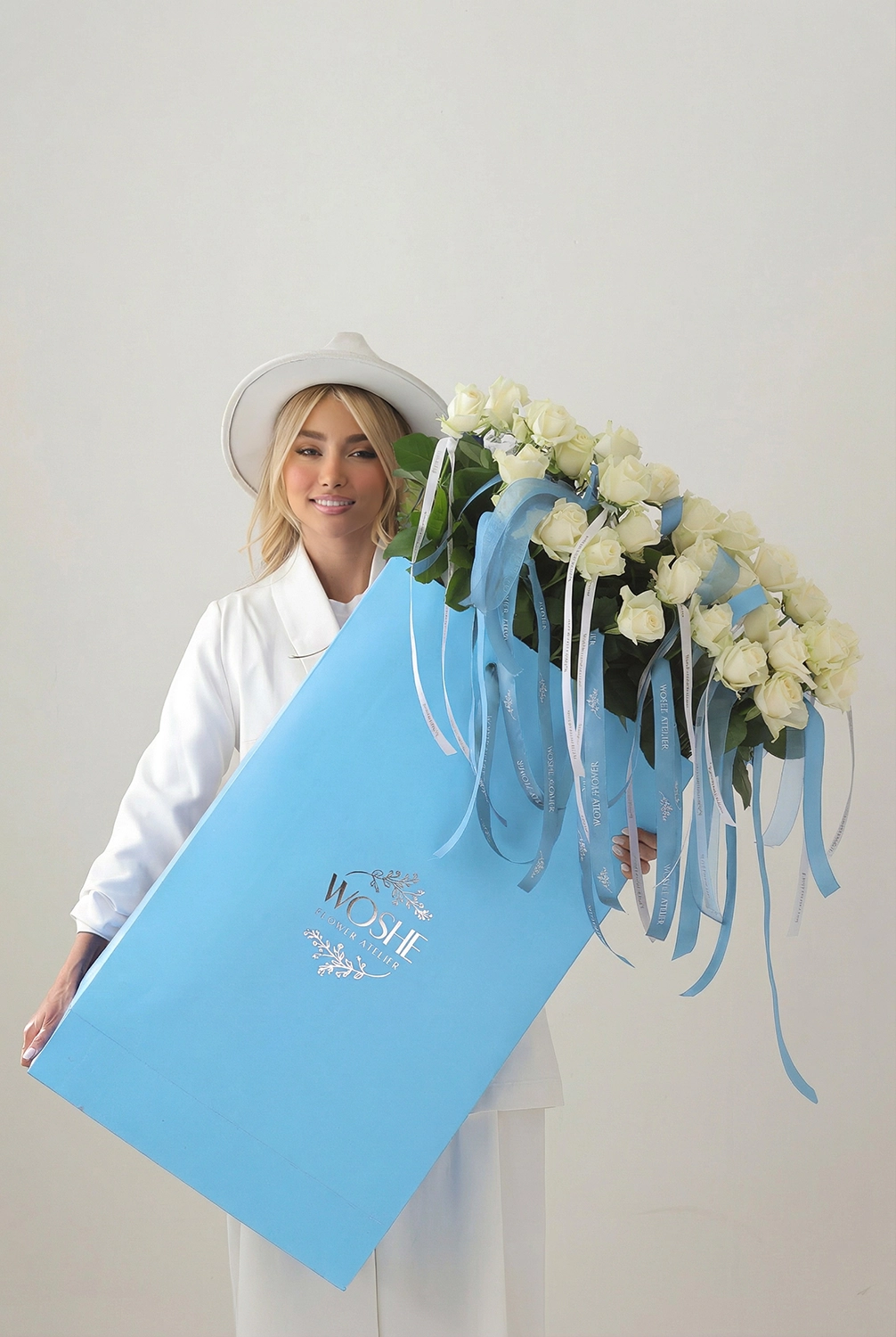 Sky Blue Rose Bag- White Roses , ۵۰ شاخه
