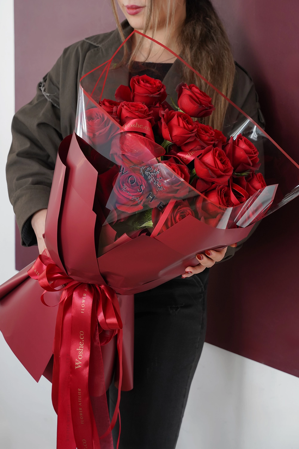 WOSHE Round Hand Bouquet - Deep Red