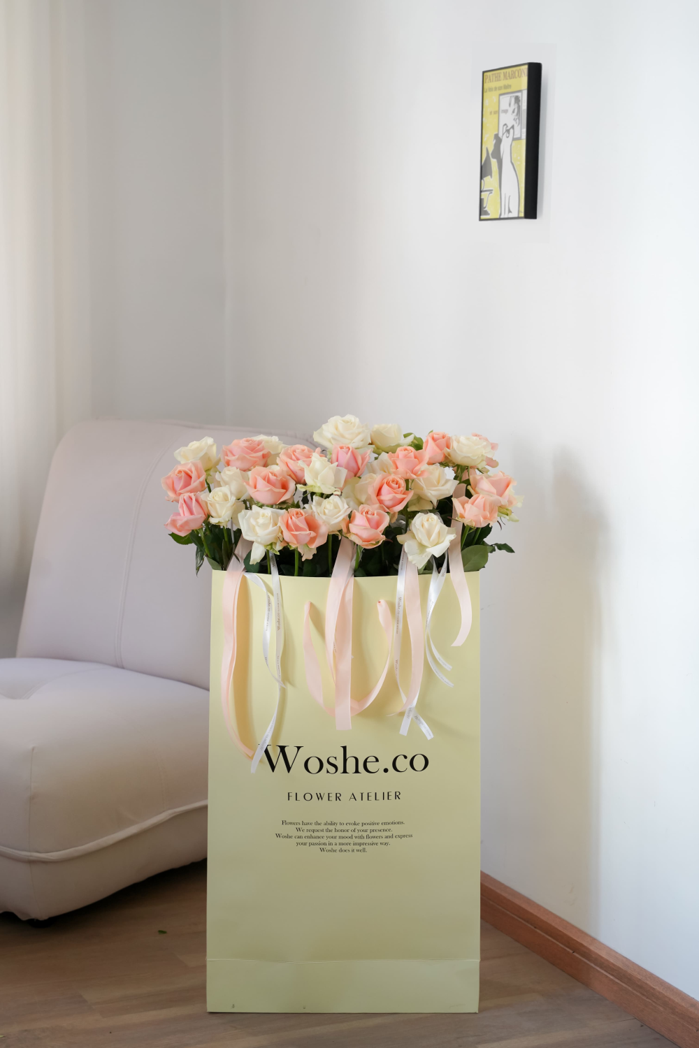 Yellow Rose Bag- White And Peach Roses , ۴۰ شاخه